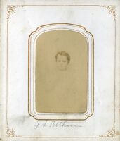 Blanchard family cabinet card album, page 21, undated Page 21 of the Blanchard family cabinet card album, undated. Includes an illustration of an identified man and a portrait of Louise Bethune.