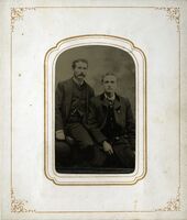 Two men, circa 1875 Black and white photograph of two men, seated. Page 5 of a tintype and cabinet card album, circa 1875.