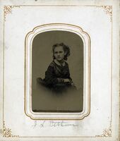 Child, circa 1875 Black and white photograph of an unidentified child, possibly Louise Bethune, circa 1875. Page 8 of a tintype and cabinet card album.