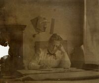 Louise Bethune at Work, circa 1880-1890 Louise Bethune at Work, black and white photograph, circa 1880-1890. Louise Bethune is pictured sitting at a drafting table working on an architectural drawing.