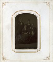 Group portrait, circa 1875 Black and white photograph Louise Bethune, Robert Bethune, and two others. Page 12 of a tintype and cabinet card album, circa 1875.