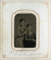 Louise Bethune and Frankie Sherman, circa 1875 Black and white photograph of Louise Bethune and Frankie Sherman from page 4 of a tintype and cabinet card album, circa 1875.