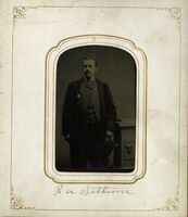 Robert A. Bethune, circa 1875 Black and white photograph of Robert A. Bethune, standing. Page 9 of a tintype and cabinet card album, circa 1875.