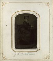 Louise Bethune, circa 1875 Black and white portrait of Louise Bethune, seated. Page 8 of a tintype and cabinet card album, circa 1875.