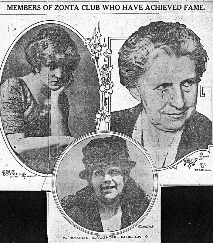Zonta members who have achieved fame: actress and theater manager Jessie Bonstelle, journalist Ida M. Tarbell and Dr. Rosalie Slaughter-Morton, physician