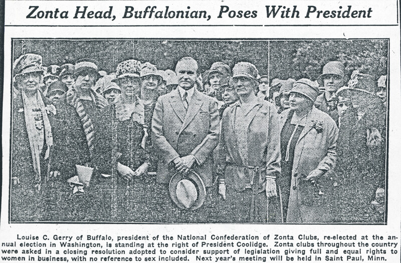 - Prominent Buffalo Zontian Louise C. Gerry was re-elected president of the National Confederation of Zonta Clubs at the annual election in Washington, D.C. where she was fortunate to meet the President of the United States Calvin Coolidge.