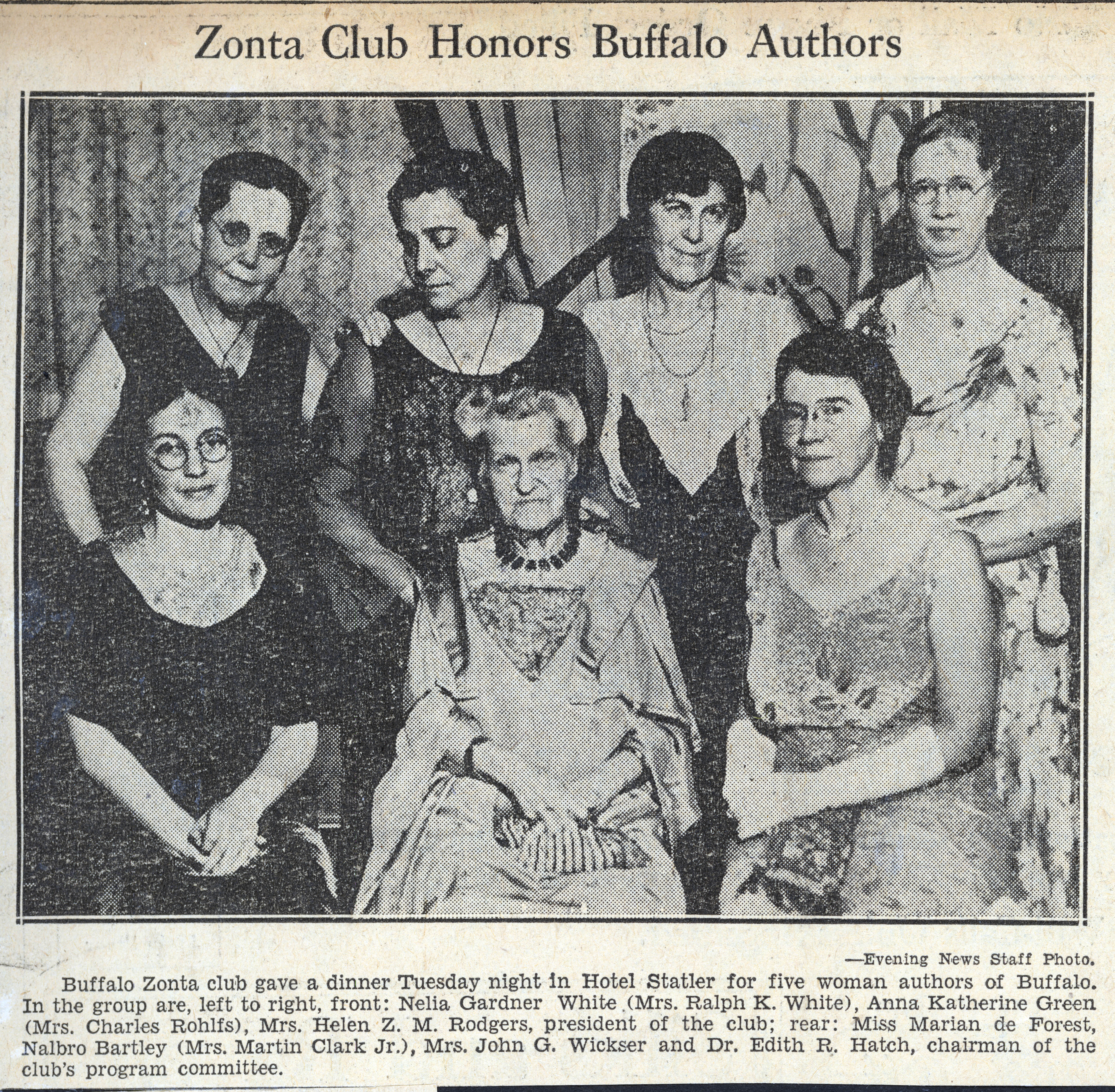 Authors honored at the Buffalo Zonta dinner were (seated left to right): Nelia Gardner White and Anna Katharine Green (Mrs. Charles Rohlfs) seated with the Buffalo Zonta President Helen Z. M. Rodgers