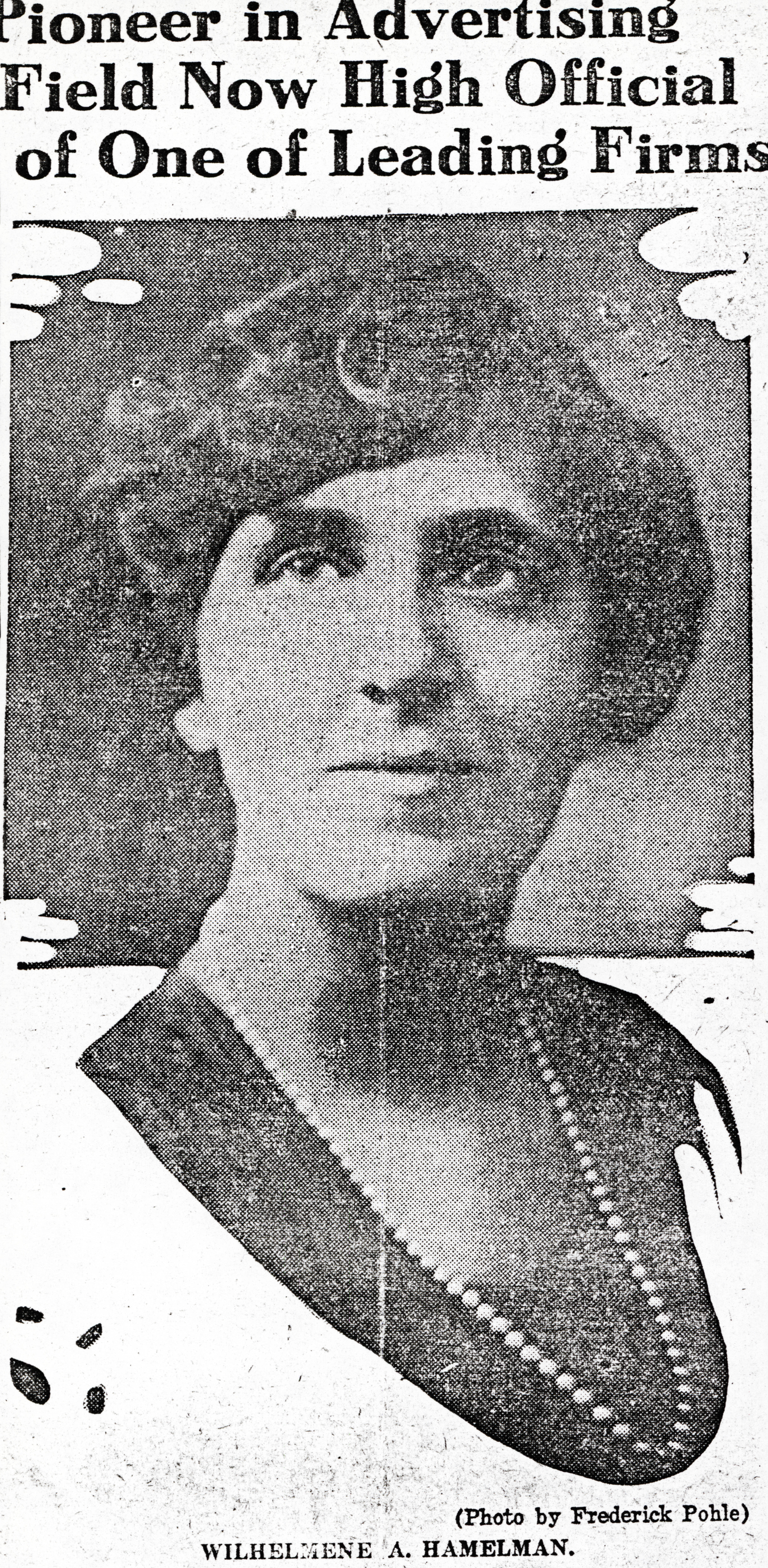 - Wilhelmine A. Hamelman not only was an innovative advertising executive, she became a high official in one of the nation's leading advertising firms