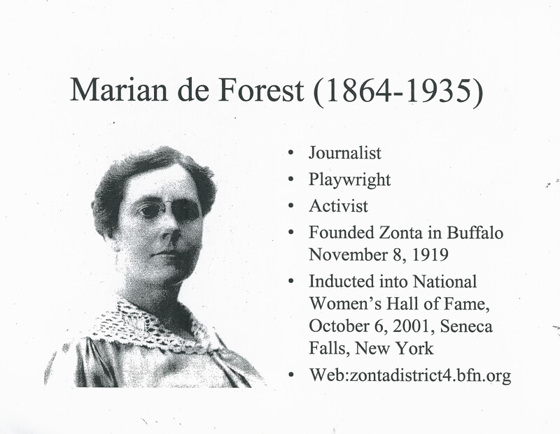- Marian de Forest (1864-1935), journalist, playwright, activist and Zonta founder