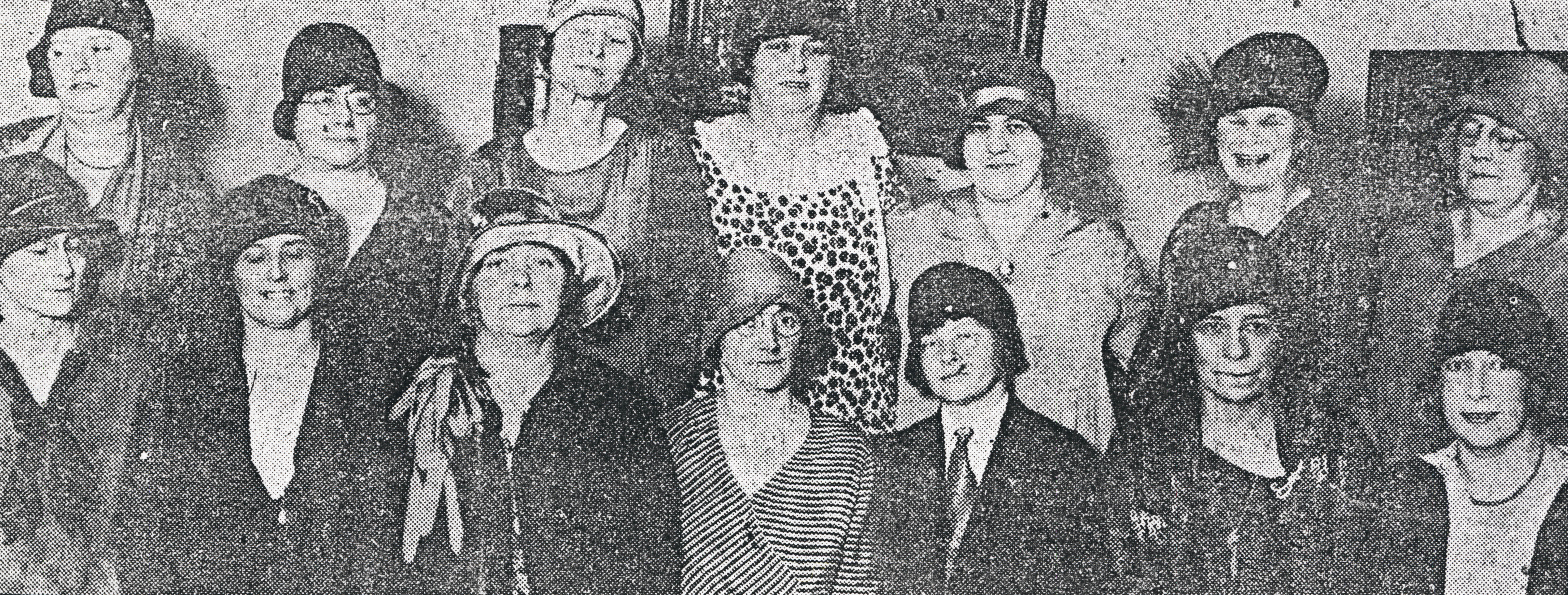Members of the Buffalo Zonta District Conference Committee included (seated, left to right): Jeannette Kempton, Edith Karnuth, May Sickmon, General Chairman Grace O'Brien, Florence Fuchs, Florence Drake, Helen ___cent, and (standing, left to right): Alice Jackson, Helen Gottlieb, Helen Annis, Anna Brixley, Mildred Cristall, Mrs. R. Gardiner and Clara B. McCollum
