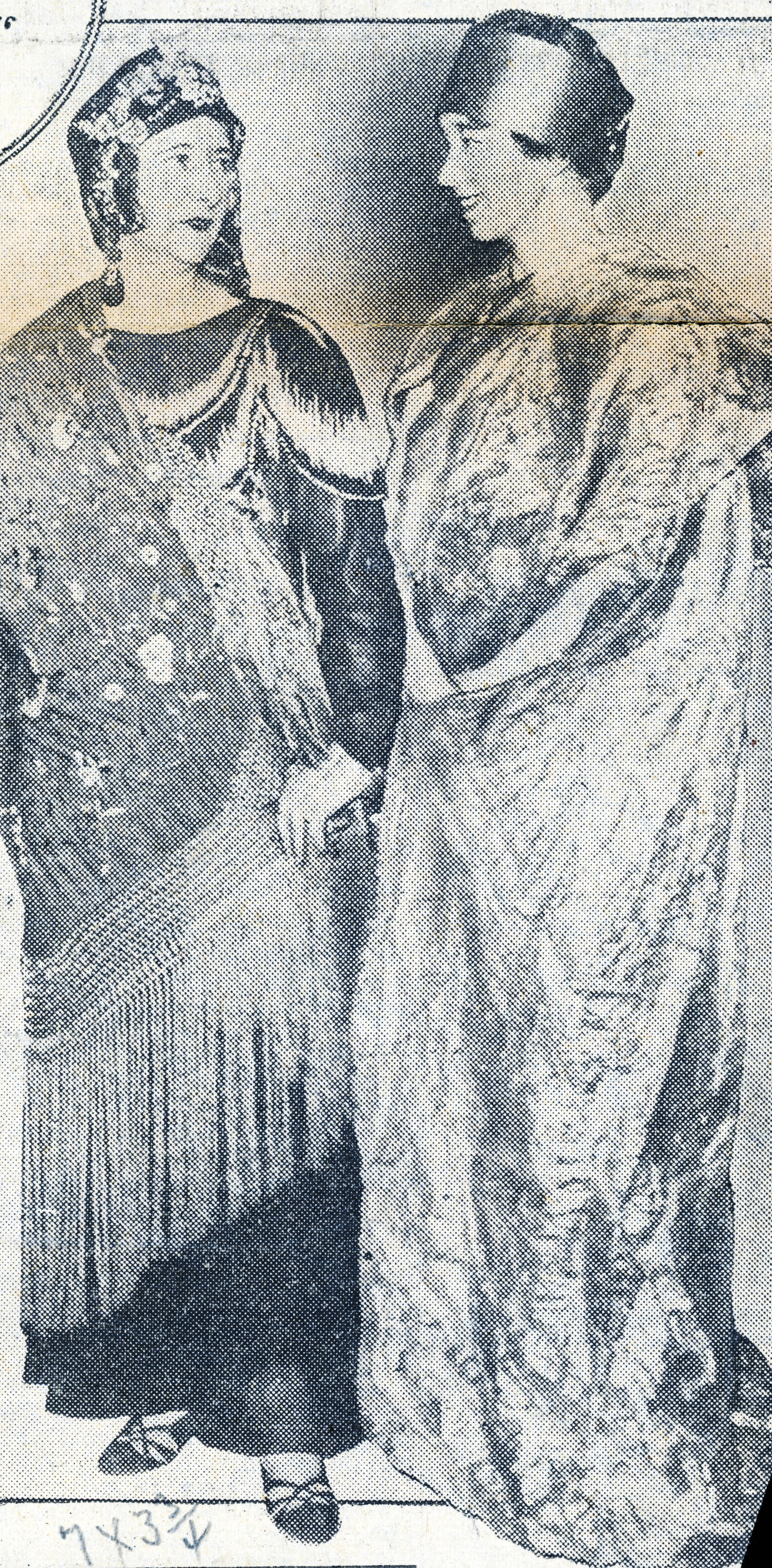 Zonta founder Marian de Forest created a drama based on the historical characters Cleopatra and Marc Antony which was performed by Buffalo Zontians Mrs. W. Nelson Wilkinson (left, Cleopatra) and Mrs. James E. Storer (right, Marc Antony)