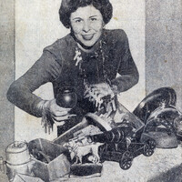 - Committee Chairman Mrs. John P. (Elena G.) Dwyer displays scrap metal collected by Zontians to support the 1942 war effort