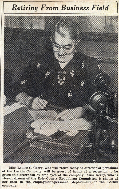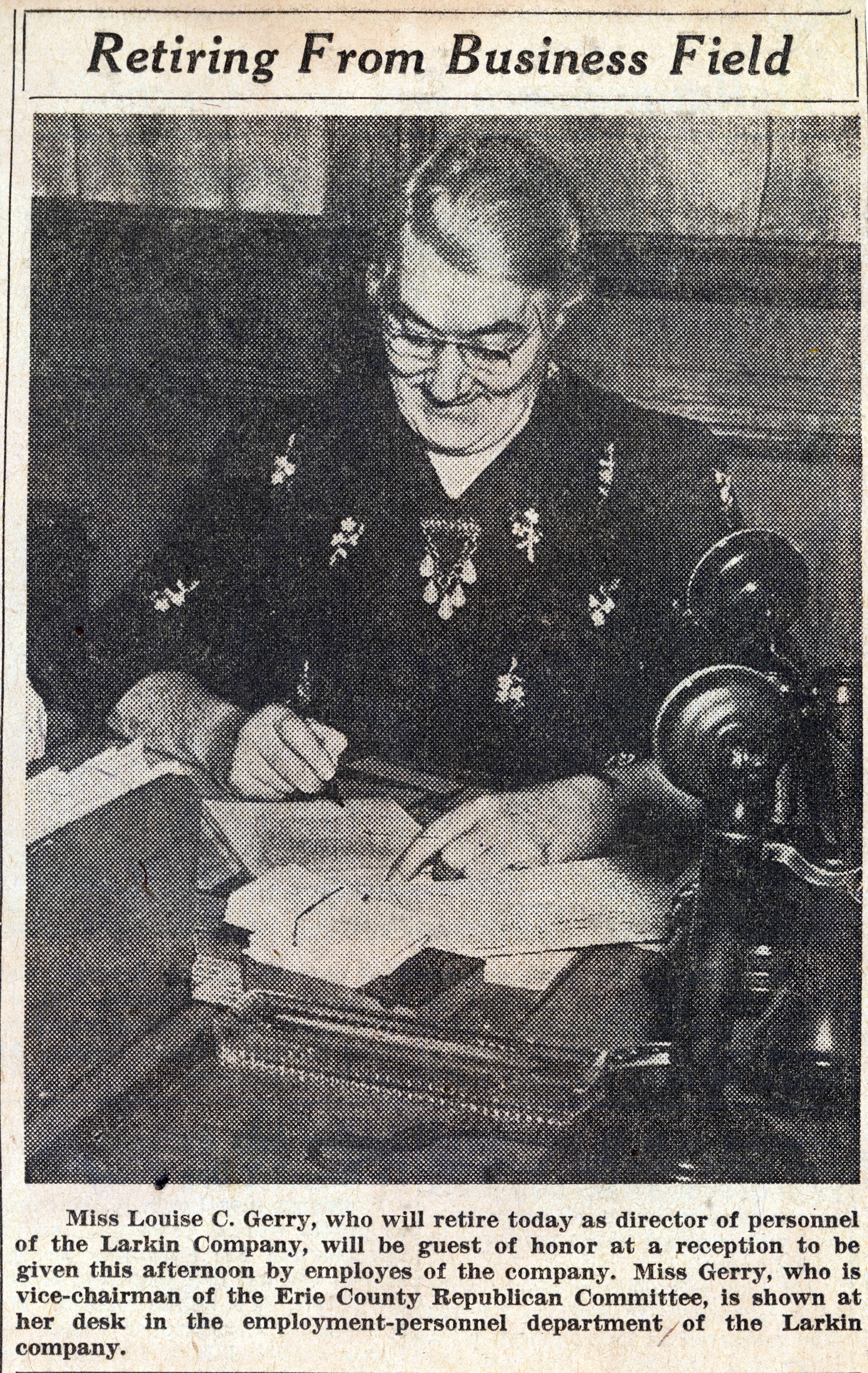 - Miss Louise C. Gerry, one of the original founders of the Zonta Club, served as director of personnel at the Larkin Company since 1925 and was active in Buffalo politics as vice-chairman of the Erie County Republican Committee as well as both local and national president of Zonta International.