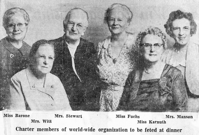 Charter members of Zonta International honored at its 40th anniversary included (left to right): Angela M. Barone, Mrs. William J. Witt, Mrs. William Stewart, Florence G. Fuchs, Edith Karnuth and Mrs. George Manson