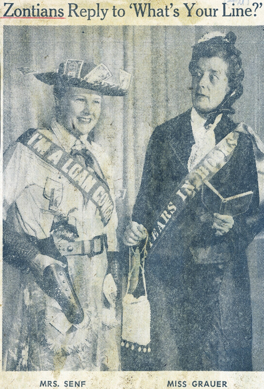 - Buffalo Zontians Betty L. Senf (left) and Dorothy W. Grauer dressed in elaborate costumes representing diverse professions appropriate to a game of 'What's my line?'