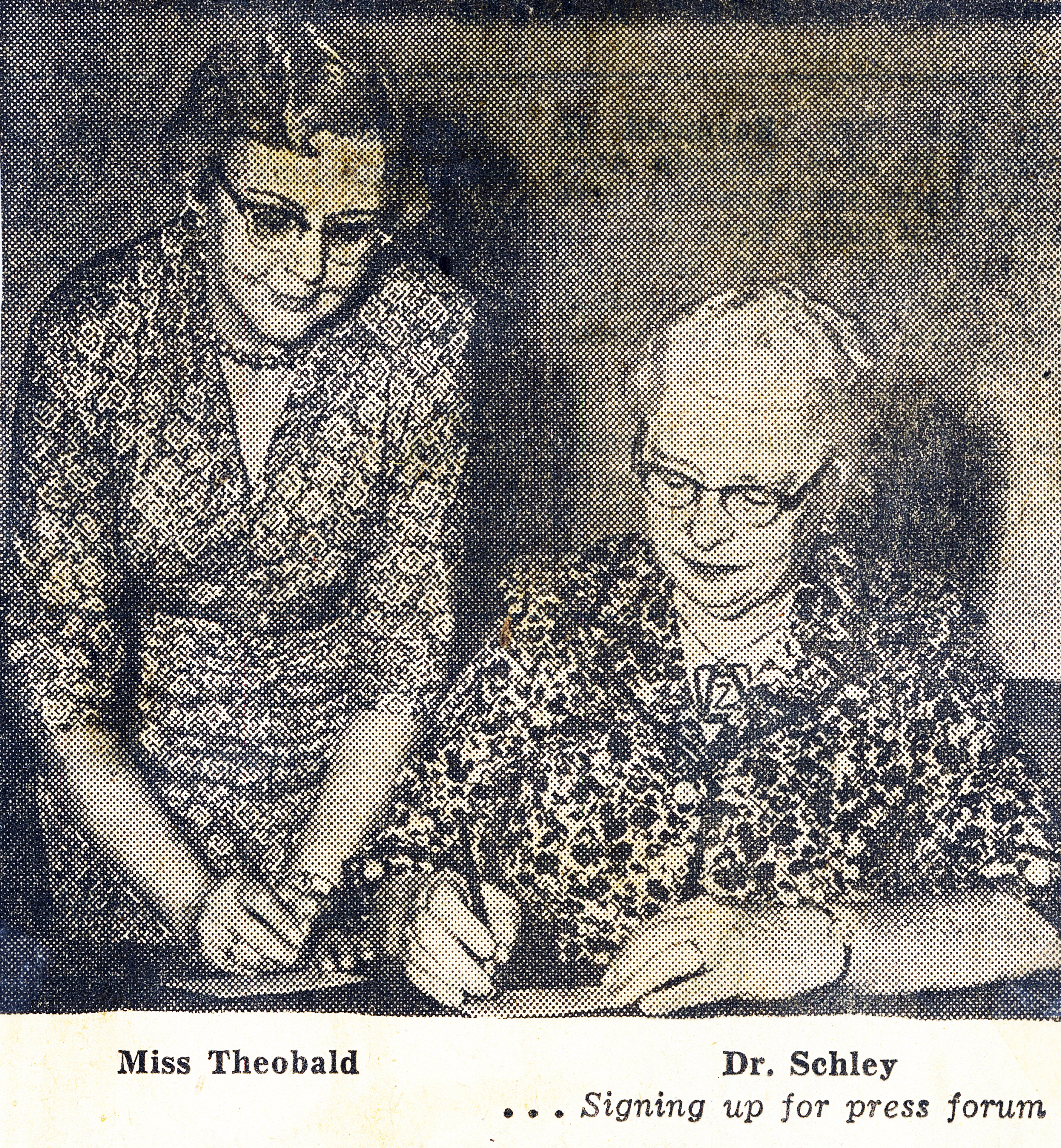 - Buffalo Zonta President Dr. Margaret Warwick Schley and colleague Edna M. Theobald sign up for the annual Press Forum