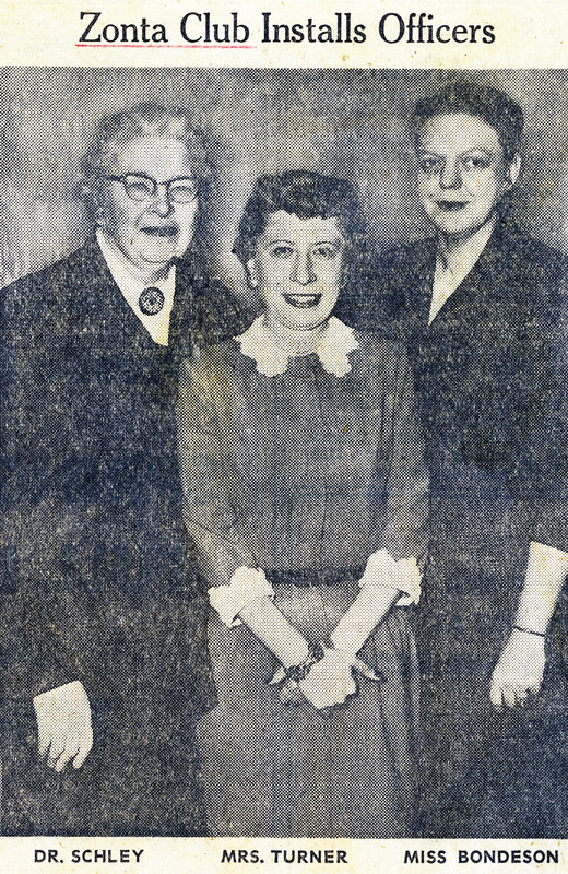 Buffalo Zonta officers elected for 1956-1957 included (left to right): Dr. Margaret Warwick Schley as President, Virginia Turner, 1st vice president, and Elizabeth Bondeson, 2nd vice president
