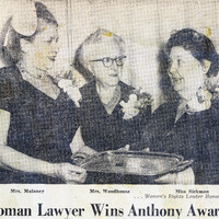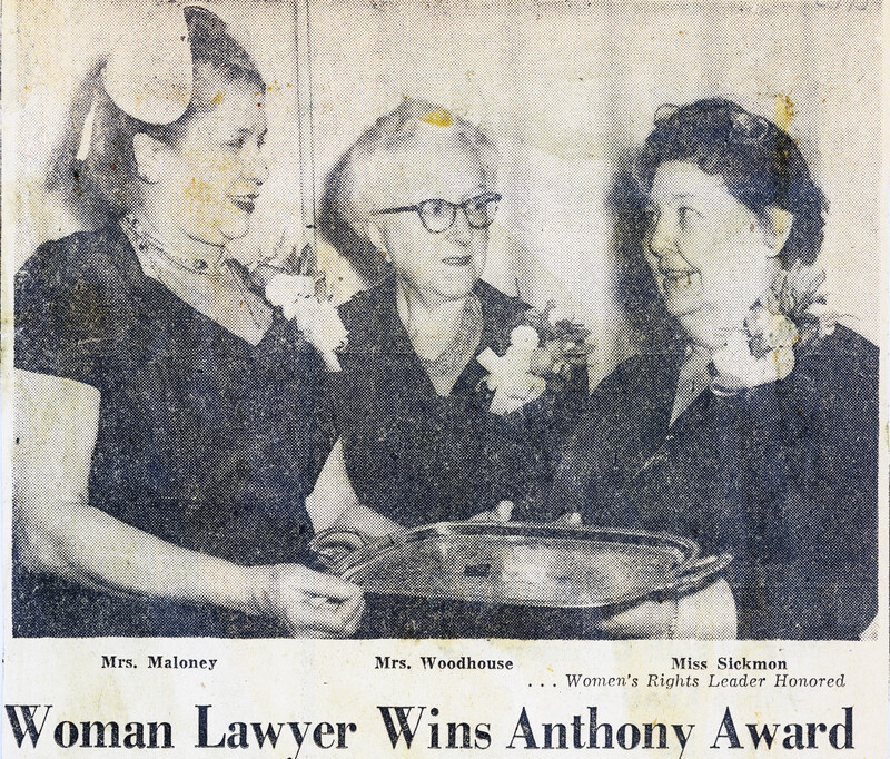 Miss May C. Sickmon, three-time Buffalo Zonta President and attorney advocating women's rights, was presented with the 1955 Susan B. Anthony award