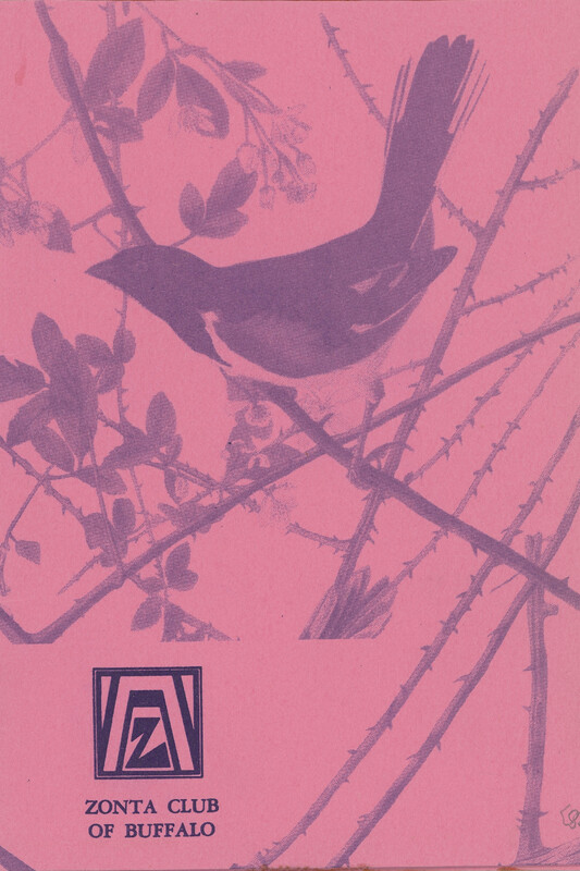 - Cover of Buffalo Zonta dinner invitation decorated with flowering twigs and bird
