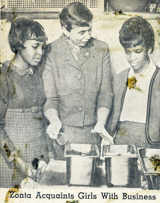 - Janice M. Kelly (center) displayed food preparation techniques to two of the 75 local teenage girls who participated in the 1965 Zonta career day (Marie L. Brokenburr (left) and Lillian D. Williams (right)