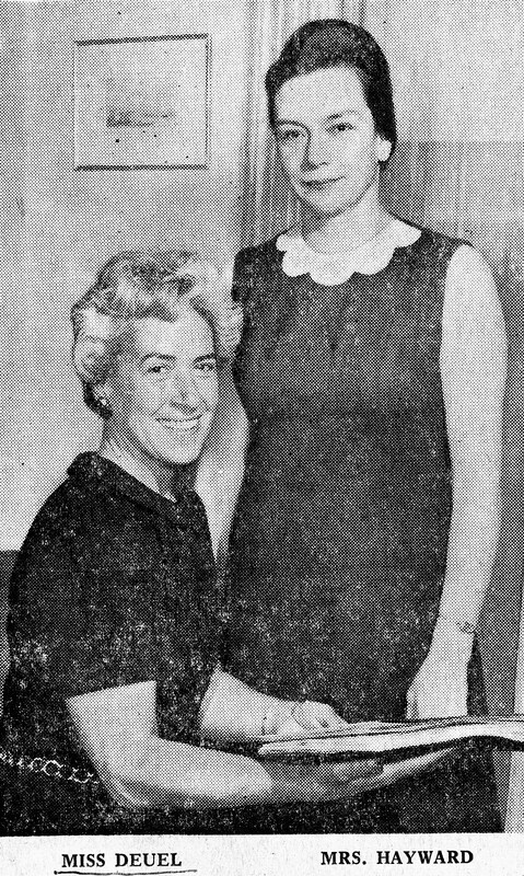 - Miss Virginia Deuel (left) served consecutive terms as Chairman of the Goodwill Industries Home Service Committee while Mrs. Robert R. Hayward (right) served as vice president.