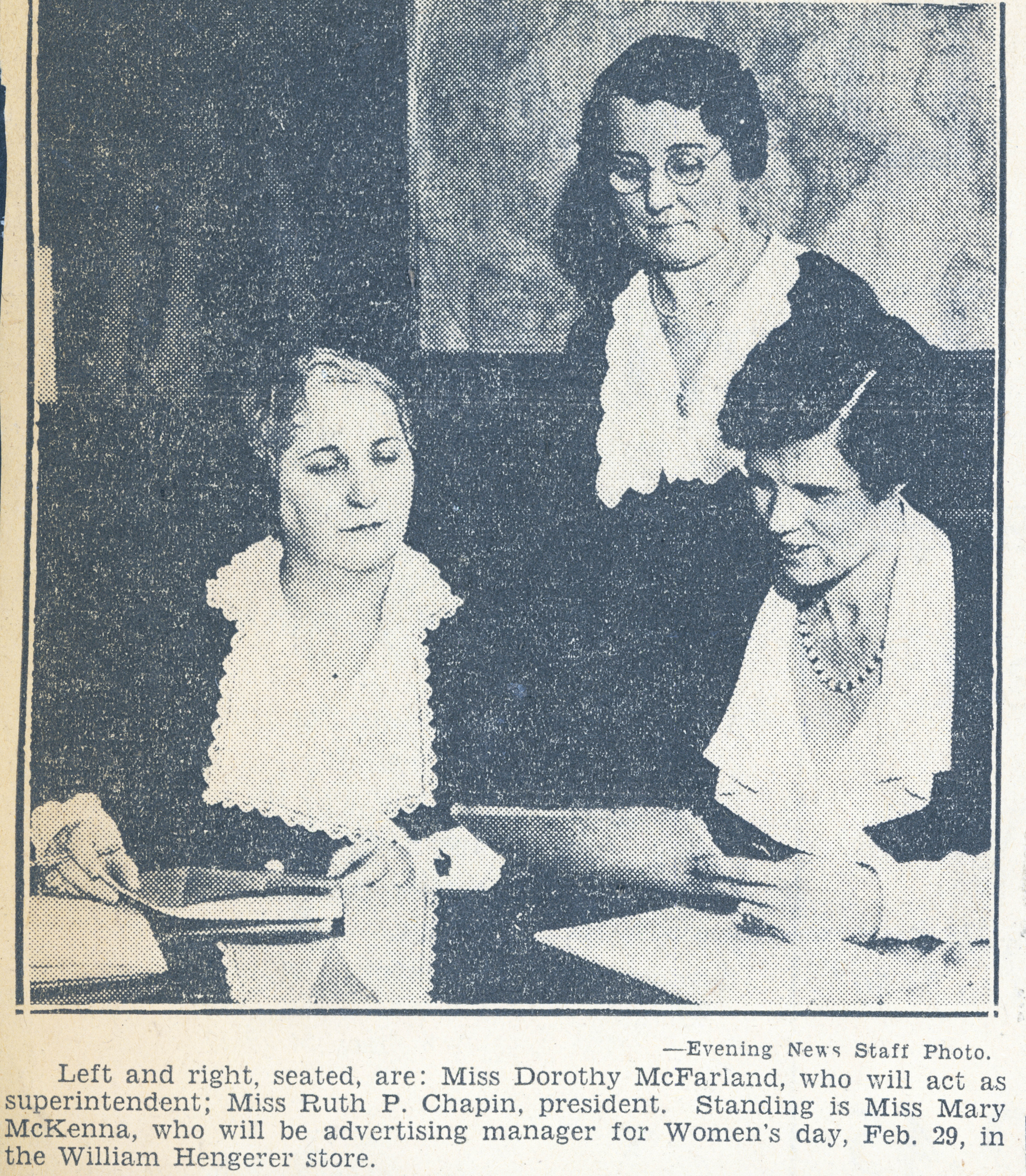 - Zontians that took over operations of the William Hengerer department store on Women's Day included (left to right): Dorothy McFarland, Mary McKenna and Buffalo Zonta President Ruth Palmer Chapin
