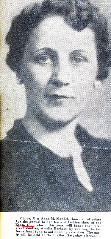 - Buffalo Zontian Miss Anna M. Mandel, chairperson of a fund-raising party to honor the late Zontian Amelia Earhart