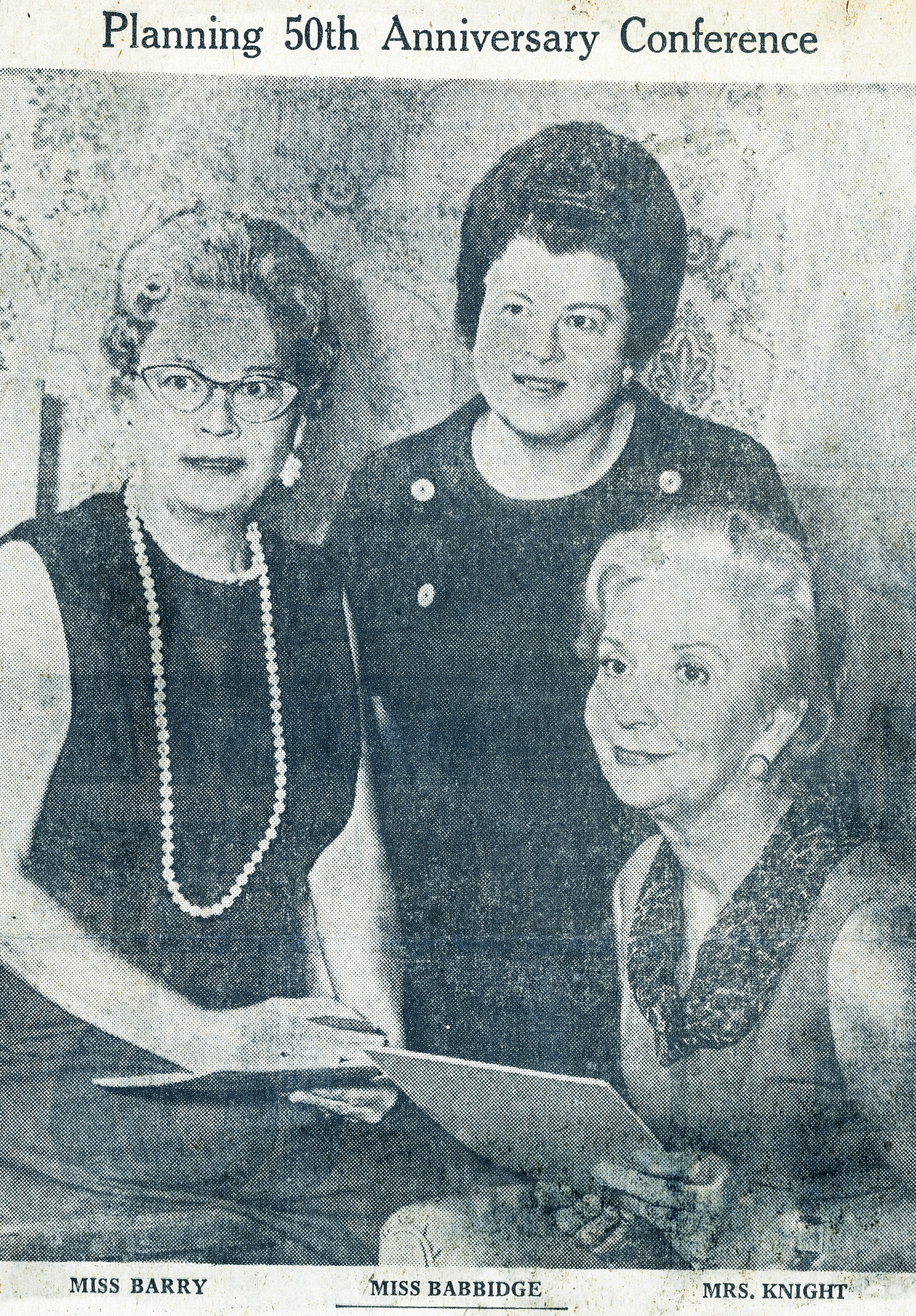 - Key planners for the Zonta International 50th anniversary celebration and conference included (left to right): Miss Margaret J. Barry, Buffalo Zonta President Miss Allalee Babbidge and Mrs. Herbert (Ella) Knight