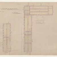 - Digital image of drawing #47 from H. H. Richardson's plans for the Buffalo State Asylum for the Insane, as reproduced by Peter Emslie, the Asylum’s Supervising Architect (1877-1880) and Building Superintendent (1878-1880) in pencil, ink, and watercolor, 1880. Drawing of the cellars for the stables and cow barns.