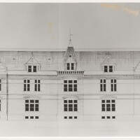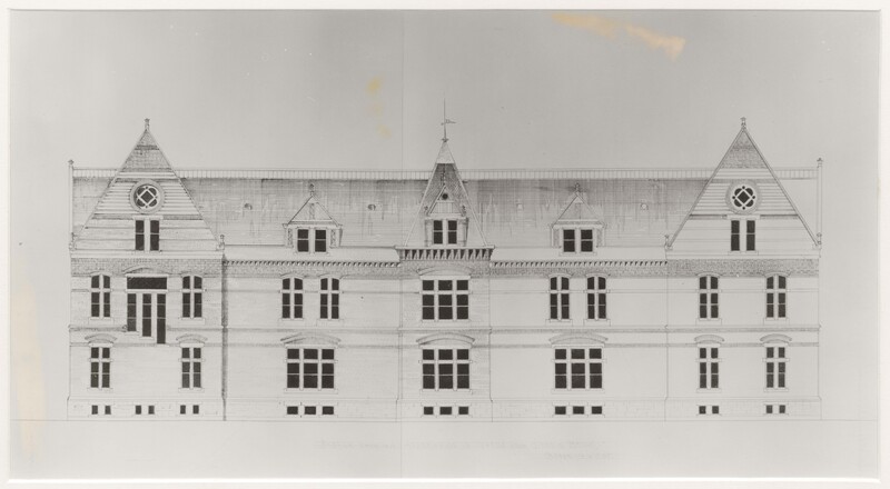 - Digital image of a plan for an elevation of one of the male wards from H. H. Richardson's plans for the Buffalo State Asylum for the Insane, as reproduced by Peter Emslie, the Asylum's Supervising Architect (1877-1880) and Building Superintendent (1878-1880), 1880.