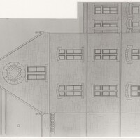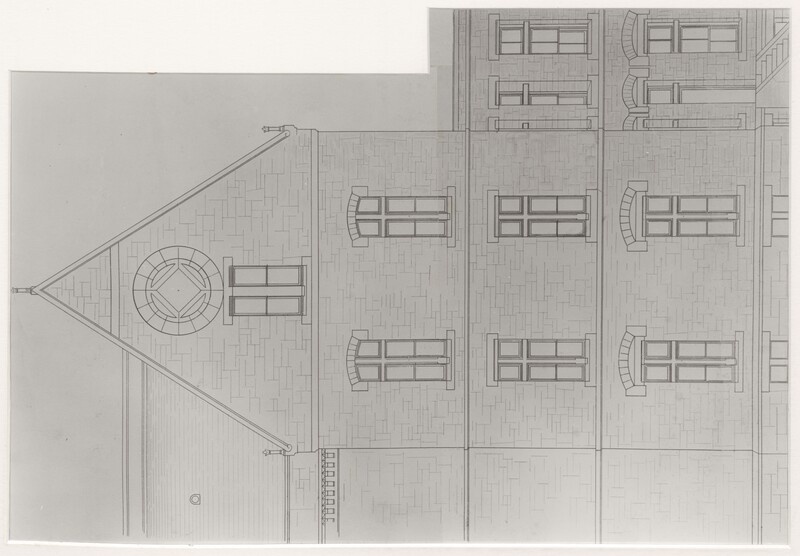 - Digital image of a detail from a plan for an elevation of one of the male wards from H. H. Richardson's plans for the Buffalo State Asylum for the Insane, as reproduced by Peter Emslie, the Asylum's Supervising Architect (1877-1880) and Building Superintendent (1878-1880), 1880.