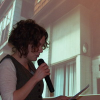 - Person holding a microphone in front of a screen