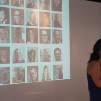 - Person holding a microphone, standing in front of a screen
