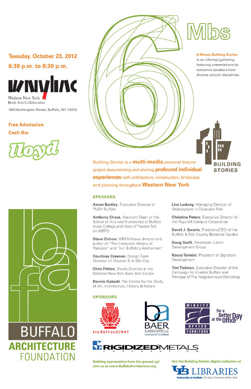 - Poster advertising October 2012 6Mbs presentation at Western New York Book Arts Collaborative