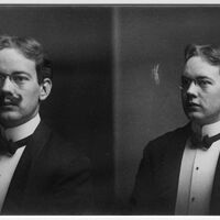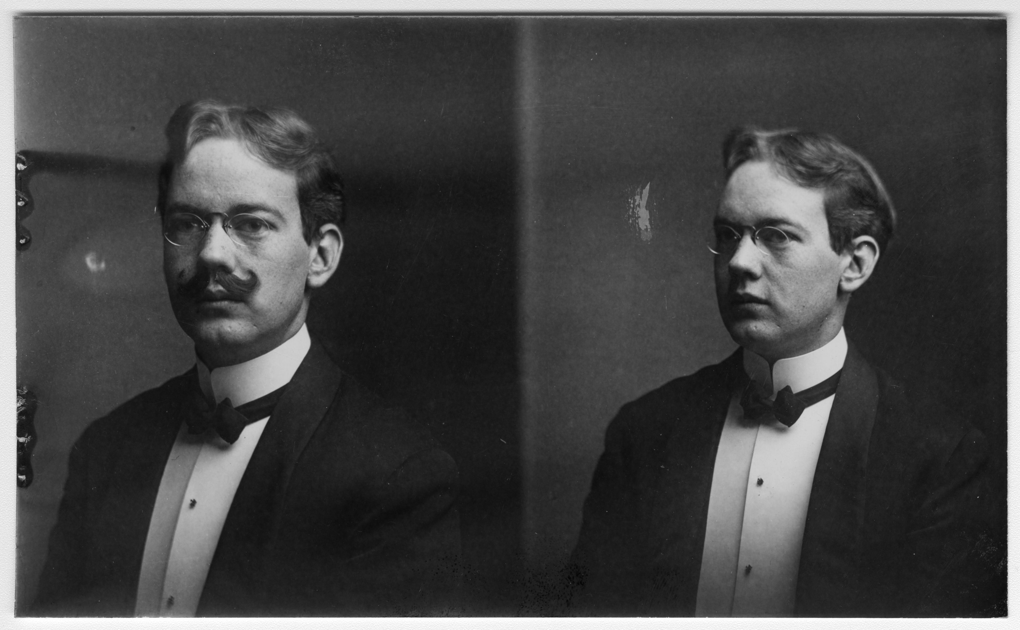 - Black and white photographic print containing two portraits of Charles William Bethune in a tuxedo, one with a mustache and one without, circa 1890-1950.