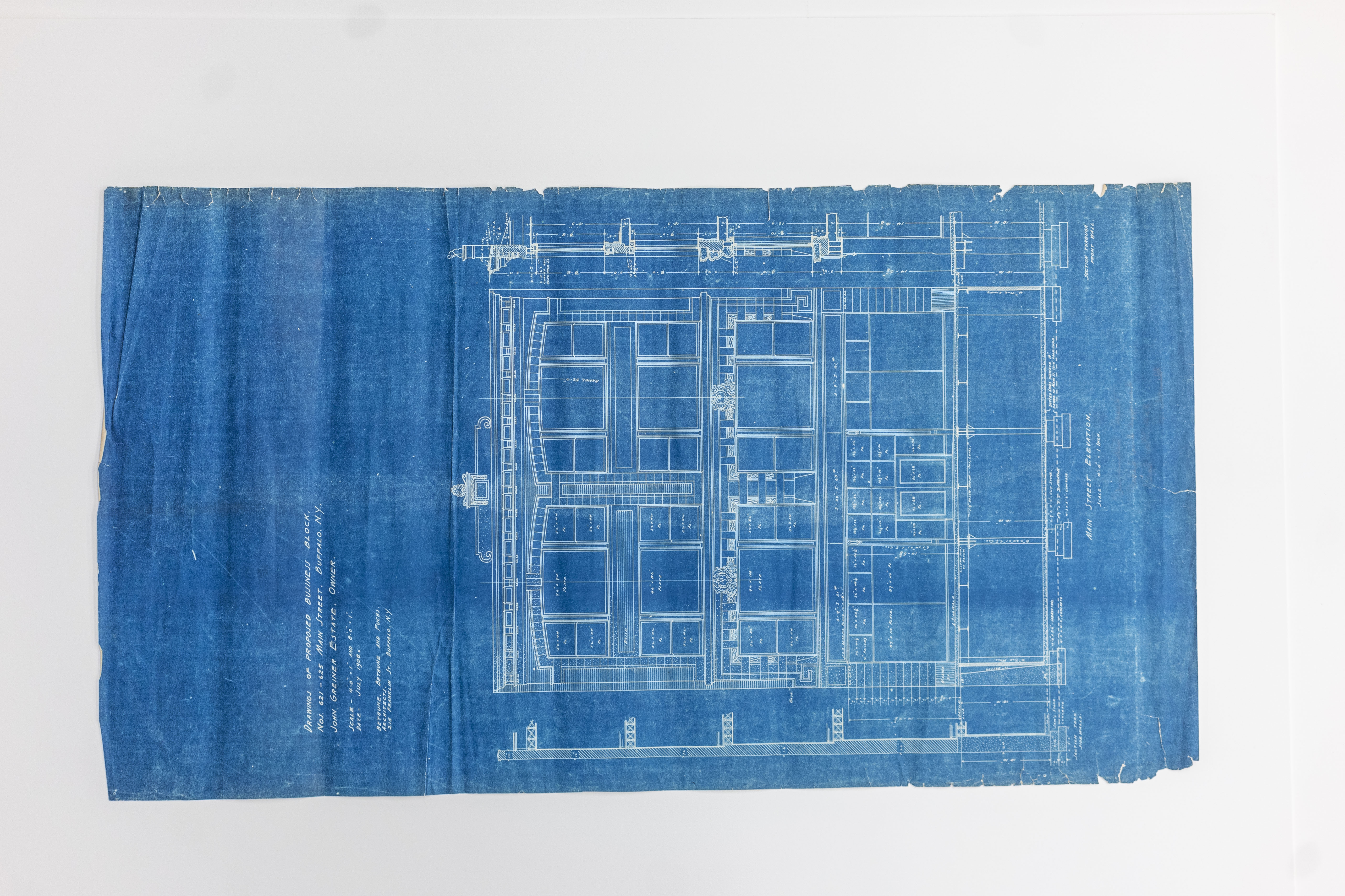 Blueprint of Proposed Business Block, Nos 621-625 Main Street, Main Street elevation, 1908.