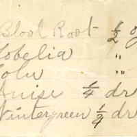 Medicinal formula written by Dr. Frances Proctor Ames, undated. Appears to be a list of ingredients.
