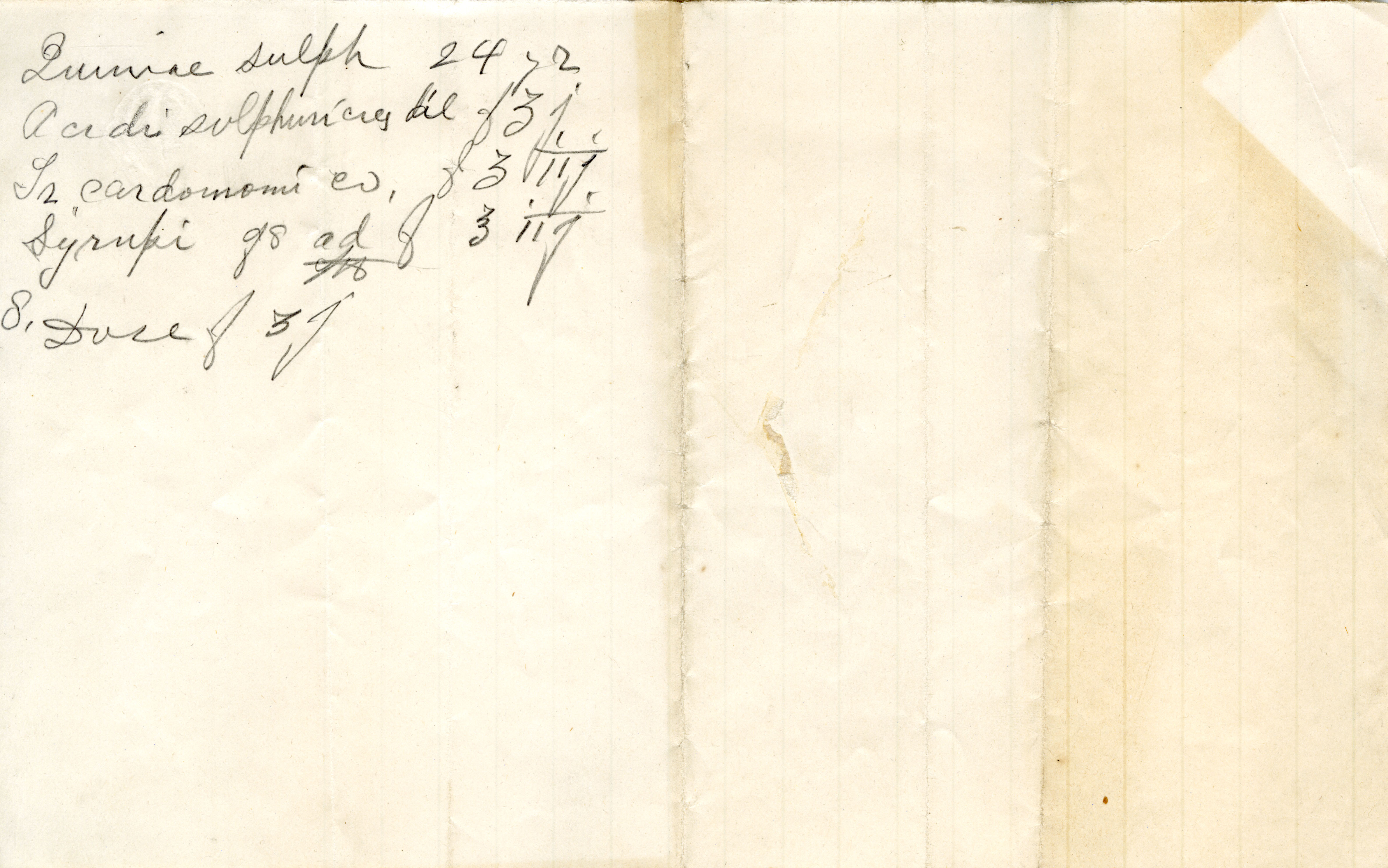 Medicinal formula written by Dr. Frances Proctor Ames, undated