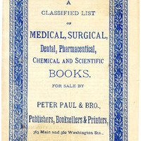 A Classified List of Medical, Surgical, Dental, Pharmaceutical, Chemical and Scientific Books for sale by Peter Paul and Bro., Publishers, Booksellers and Printers, 1884-1885.