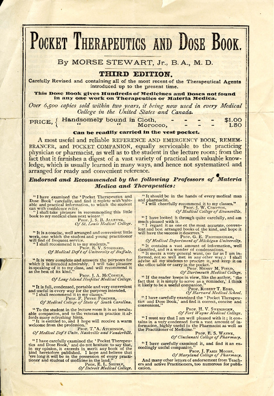 Pocket Therapeutics and Dose Book by Morse Stewart, Jr., 1886.