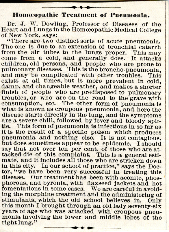 "Homeopathic Treatment of Pneumonia", undated