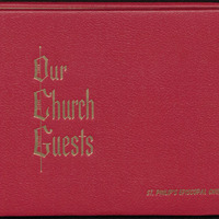 Bound volume detailing the date, name, address, and church home of visitors to St. Philip's Episcopal Church between 1956 and 1961. The guest register was given by St. Joseph’s Guild in memory of A. B. Parker.