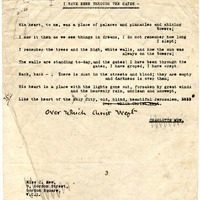 - Charlotte Mew's undated typed manuscript and proof of poem "I Have Been Through the Gates" with Mew's corrections in ink.