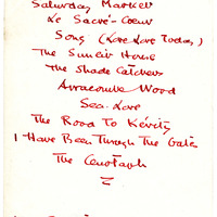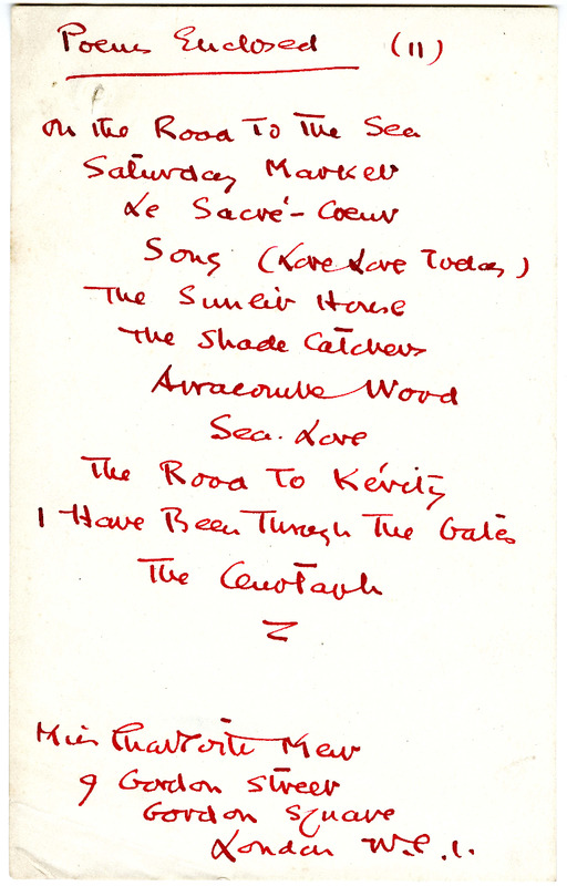 - Charlotte Mew's undated handwritten list of 11 poems to be added to expanded 1921 edition of "The Farmer's Bride."