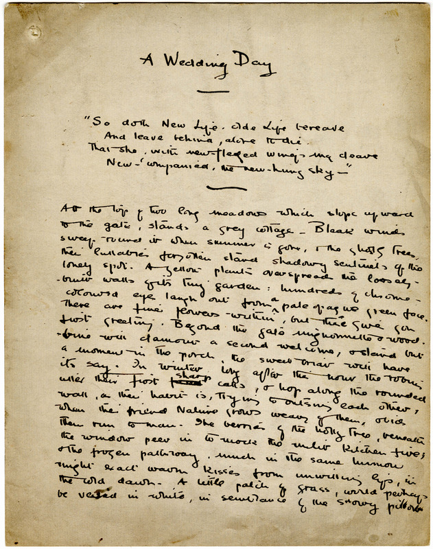 - Charlotte Mew's autograph manuscript of short story "A Wedding Day."