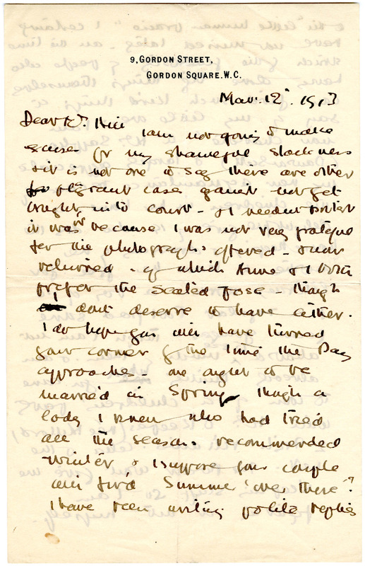 Autograph letter signed from Charlotte Mew to Mrs. Hill, March 12, 1913