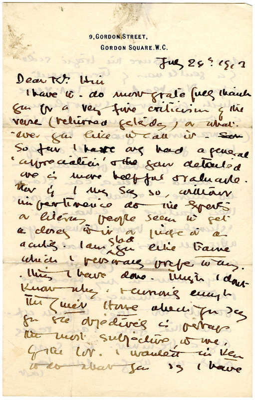 Autograph letter signed from Charlotte Mew to Mrs. Hill, July 24, 1913
