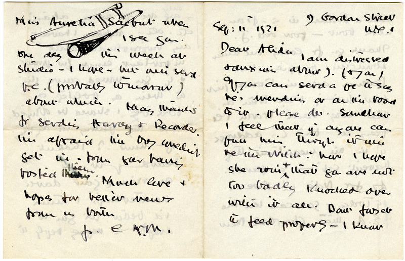 Autograph letter signed from Charlotte Mew to Alida Klementaski Monro, September 11, 1921