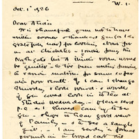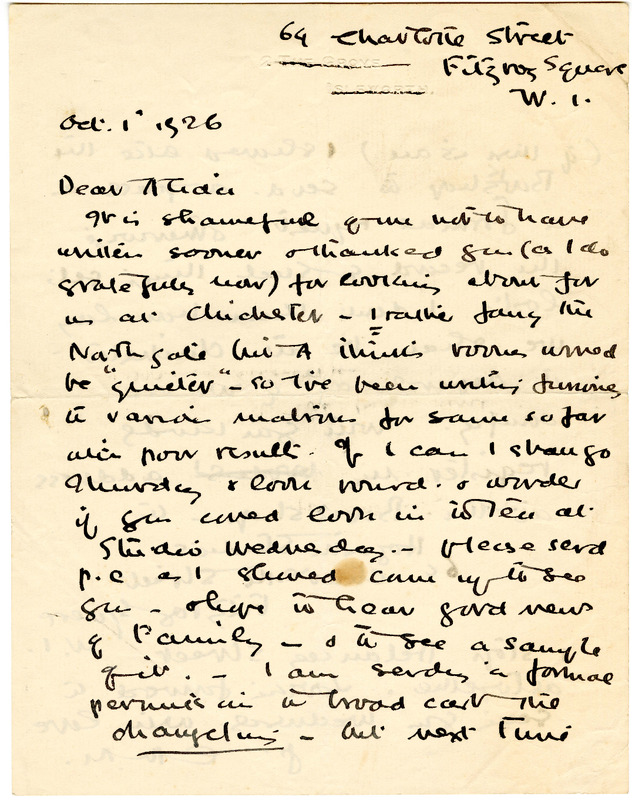 Autograph letter signed from Charlotte Mew to Alida Klementaski Monro, October 1, 1926