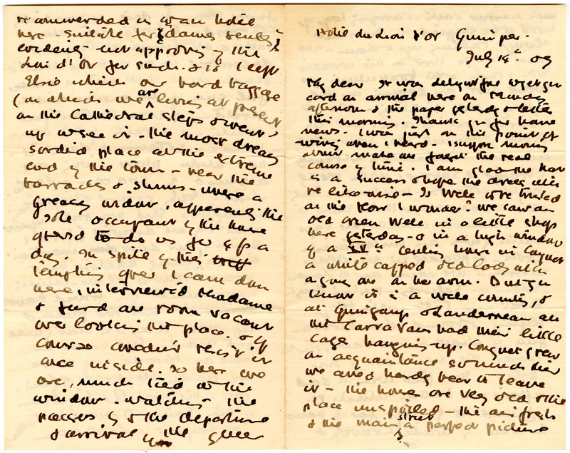 Autograph letter signed from Charlotte Mew to Miss E. Oliver, July 14, 1909